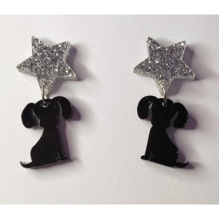 Pendientes perrito y estrella metacrilato, largo 3cm