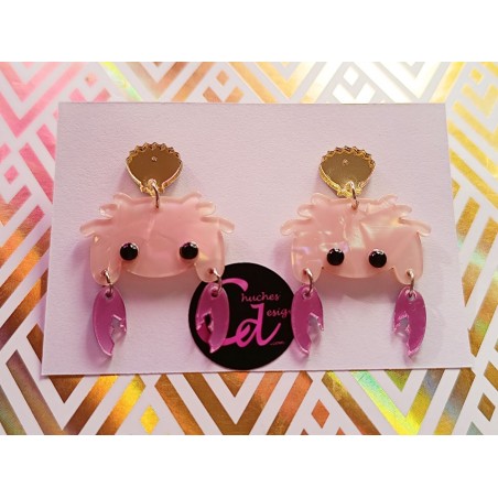 Pendientes cangrejo de metacrilato y nacar, largo 5cm
