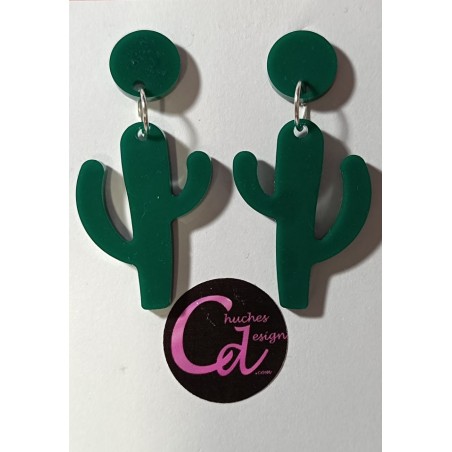 Pendientes cactus de resina y acero, largo 6cm
